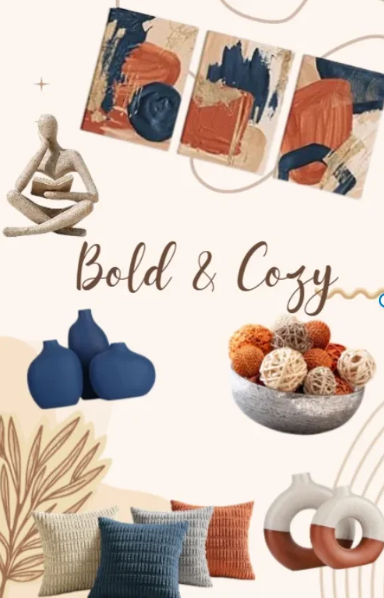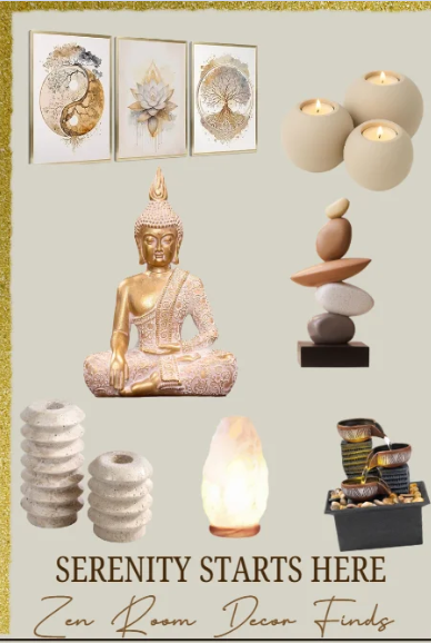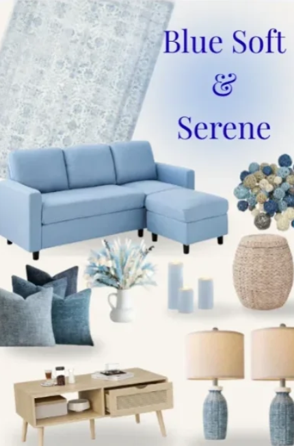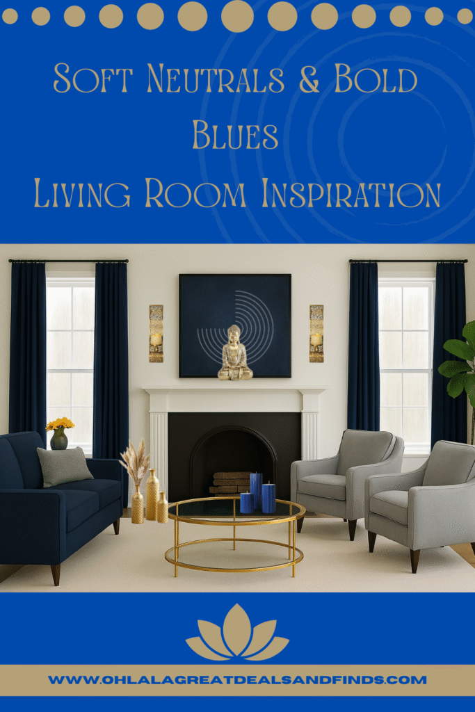 Elevate your space with serene style—navy, gray, and gold accents meet bold art, soft textures, and peaceful touches for a cozy, luxurious living room that inspires calm and beauty.