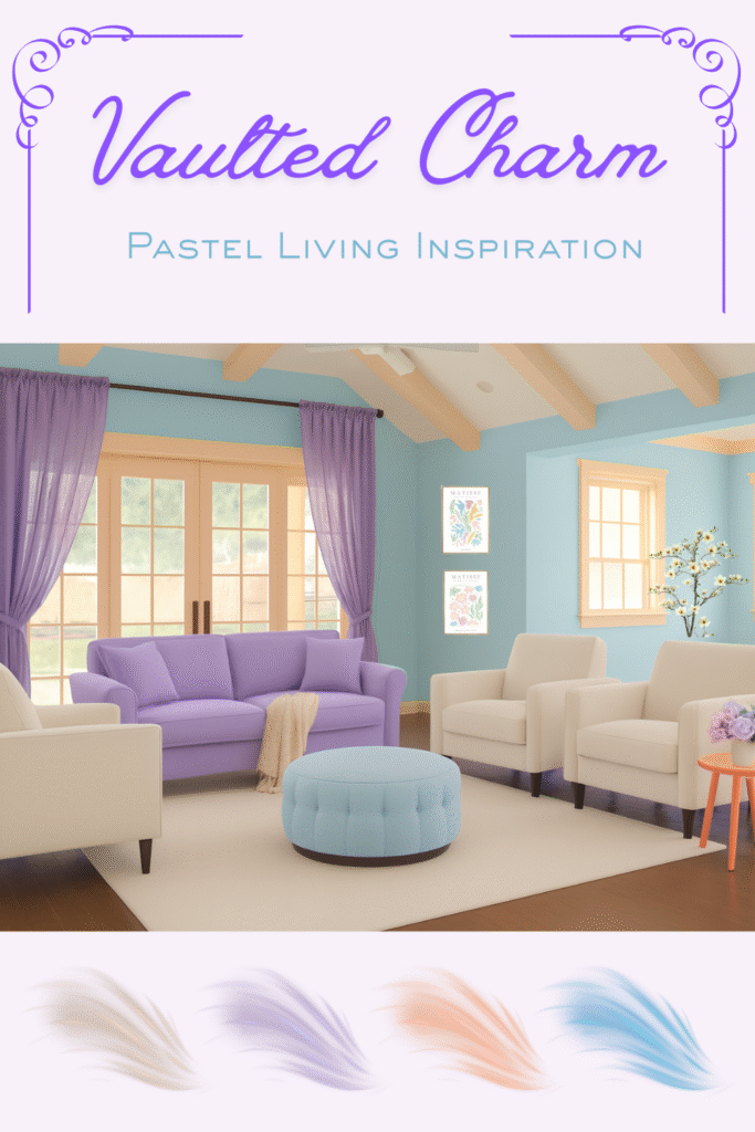 Discover this cozy bedroom makeover featuring Behr’s Lavender walls and Sunbeam Yellow ceiling. Styled with rustic beams, a pastel rug, and chic accents, this look ties color and comfort together. Shop the items and explore the paint colors here